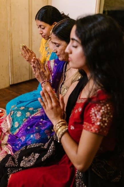 The PDF allows for close examination of these verses, revealing how visualizing Gayatri’s beauty and purity leads to inner peace and well-being. These shlokas connect the divine form with tangible positive outcomes for the devotee.